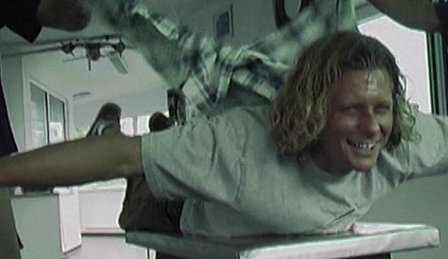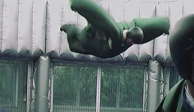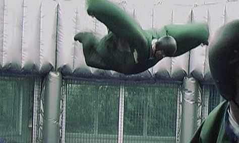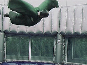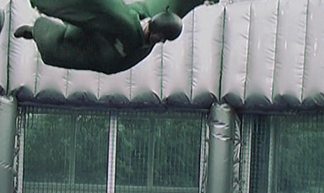Ein Ausflug zur Air-Power-Arena stand auf dem Programm. Die Anlage, die auf dem Weg nach NL an der holländischen Grenze liegt, ist ein ideales Ziel um die eigenen Knochen schon mal auf Starkwind vorzubereiten. Dort werden künstlich Windgeschwindigkeiten bis 180 km/h erreicht auf denen man sich (wenn man es kann) im Stil eines Fallschirmspringers halten soll. Damals war das alles Neuland. Heute gibt es mehrere Centren für diese Sportart.