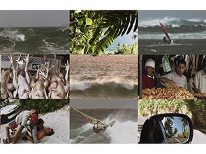 Am Nachmittag checkten wir das Revier. Strahlender Sonnenschein, 4-5 Windstärken, gute Wellen am Riff, glasklares türkises Wasser. Eine traumhafte Filmkulisse. Die Leiter der Surfstation, Alex und Denise klärten uns über die örtlichen Gegebenheiten auf: Erstes Riff, zweites Riff, one eye, stehtiefes Wasser bis zum Riff, auf die Gezeiten achten und der Sonntag gehört in der Welle den Locals. Beim Anblick des Spots mussten wir erst einmal aufs Wasser. So blieb die Kamera am ersten Tag, das erste und letzte Mal, in der Kiste.